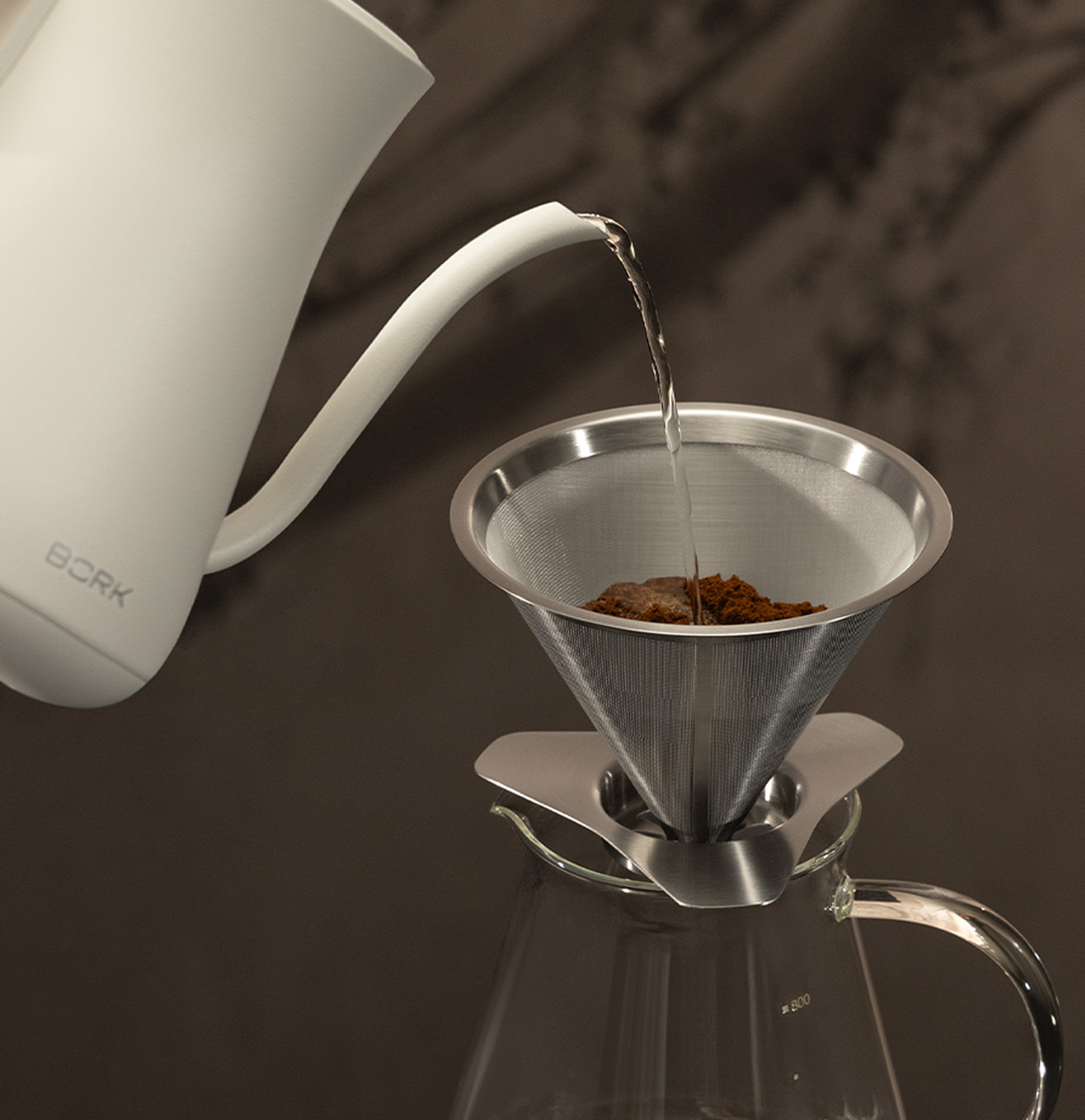 Изящный носик подает тонкий, ровный, непрерывный поток воды для правильного розлива. Идеальное решение для приготовления кофе в пуровере.