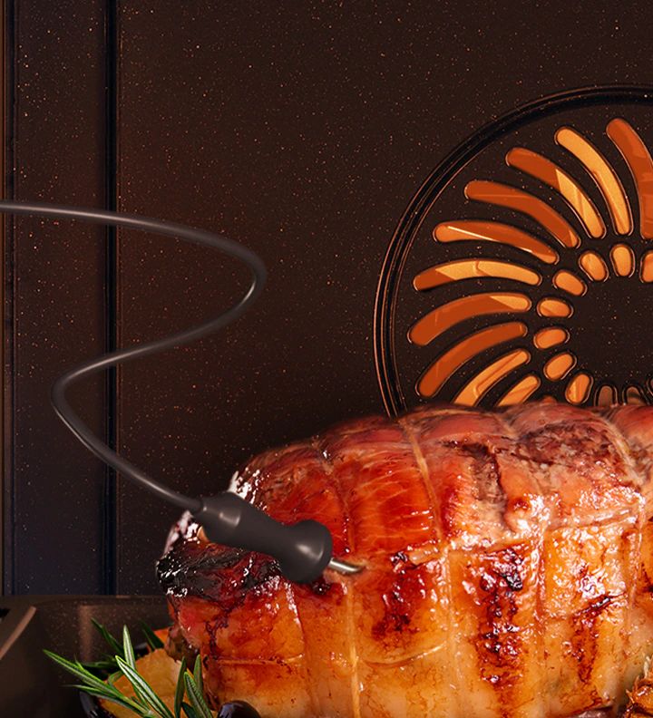 Более легко проверять внутреннюю температуру блюд и следить за тем, чтобы они были приготовлены в соответствии с вашими вкусами. Термощуп* устраняет любые догадки, четко указывая, что даже большие куски пищи были приготовлены должным образом. И нет необходимости тратить время и нагревать, открывая духовку для проверки.
