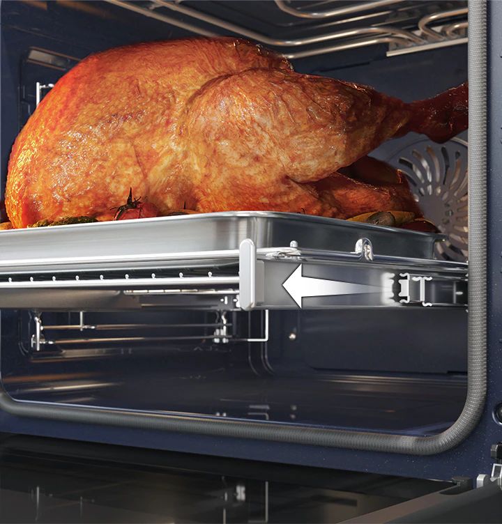 Доставать продукты из духовки гораздо проще. Телескопическая направляющая плавно вдвигается и выдвигается практически без усилий, даже если вы используете большие или тяжелые кастрюли. Это создает гораздо меньше трения, поэтому его намного легче загружать и разгружать. И вы можете поливать, переворачивать и приправлять еду без каких-либо проливов.
