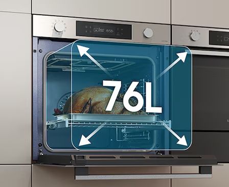 Готовьте больше блюд большего размера с массивной духовкой объемом 76 литров. Это открывает больше возможностей в домашней кухне. Вы можете вместе приготовить много разных блюд, например, все, что вам нужно для вечеринки. Или он может легко вместить большие предметы, такие как индейка королевского размера, для семейного сбора.