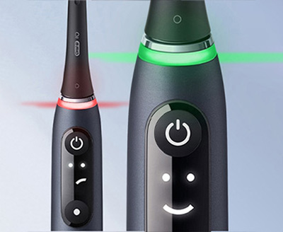 Умный датчик давления сигнализирует красным световым сигналом о чрезмерном надавливании и зеленым — о правильной чистке.