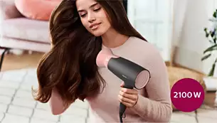 Этот фен мощностью 2100 Вт создает мощный воздушный поток для достижения великолепных результатов день за днем.