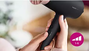 Легко подберите сочетание температуры и скорости в соответствии со своей прической и типом волос. Шесть доступных режимов помогут точно управлять параметрами фена для идеальной укладки.