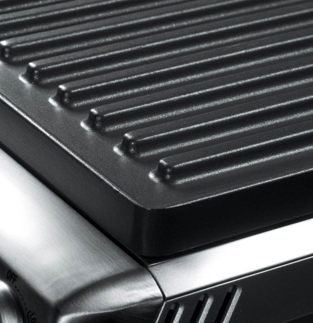 Готовьте не только идеальный стейк, но и овощи, яйца, блины, даже десерты. Рифленую и плоскую панели можно использовать в качестве пресса для сэндвичей. Трехслойное антипригарное покрытие Quantanium делает G802 устойчивым к повреждениям.