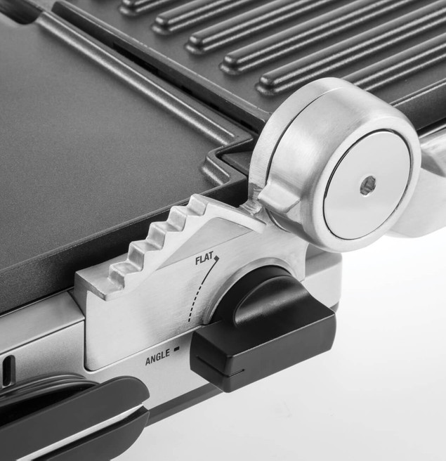 Тушите продукты в собственном соку или готовьте блюда без жира, изменив угол наклона поверхностей. Встроенный лоток и бортики на панелях защищают стальной корпус от загрязнений. Верхняя рабочая поверхность плотно закреплена на ручке и не болтается при открывании. За счет этого излишки сока и жира не стекают на стол. Панели снимаются одним движением и легко очищаются мягкими средствами.
