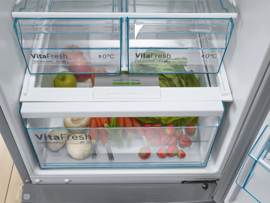 Мало купить продукты, нужно еще сохранить их свежесть. Отделения VitaFresh помогают дольше сохранить свежими ваши продукты. В ящике можно установить один из двух уровней влажности для оптимального сохранения полезных свойств продуктов. Здоровая пища каждый день! Теперь это просто