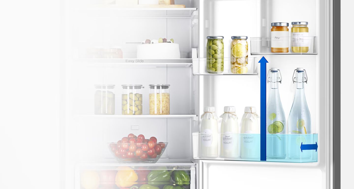 Большой дверной карман позволяет хранить в двери высокие упаковки с продуктами. В этот карман вы можете поместить большие упаковки молока и сока или два ряда бутылок или банок с напитками. В результате у вас освобождается больше места на полках для размещения продуктов к большой вечеринке!