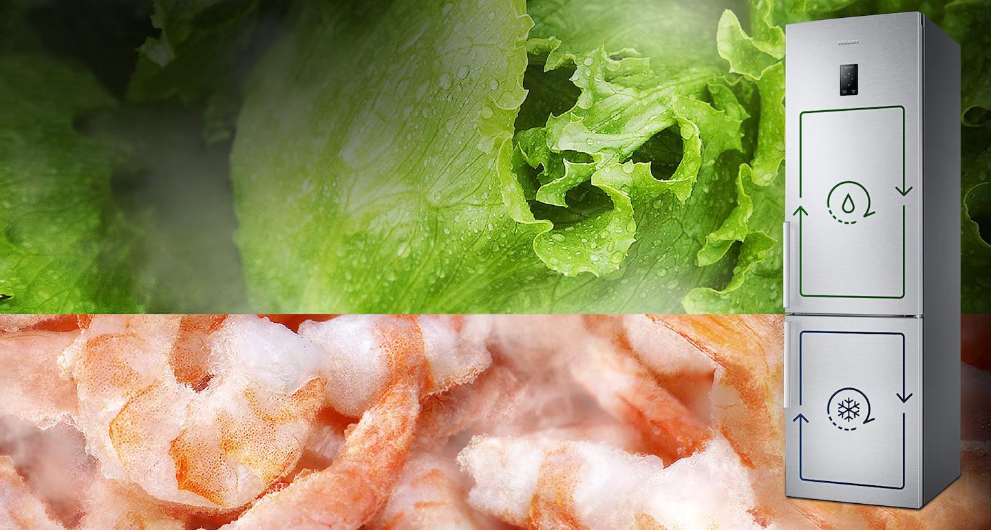 Технология Twin Cooling Plus ™ обеспечивает раздельное охлаждение холодильного и морозильного отделений. Независимые испарители и системы охлаждения обеспечивают оптимальное охлаждение и влажность, поэтому еда дольше остается свежей, а запахи не смешиваются.