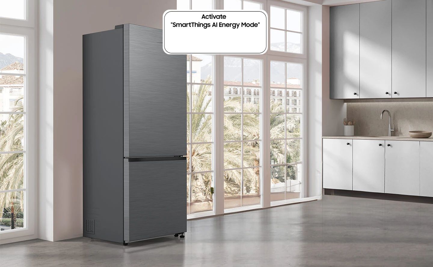 Сократите потребление электроэнергии на 15 %* с помощью режима AI Energy**. Если предполагаемый счет за электроэнергию превышает заданную цель, он предлагает вам сэкономить электроэнергию***. Он оптимизирует скорость компрессора и цикл размораживания, основываясь на вашей модели использования и окружающей обстановке.