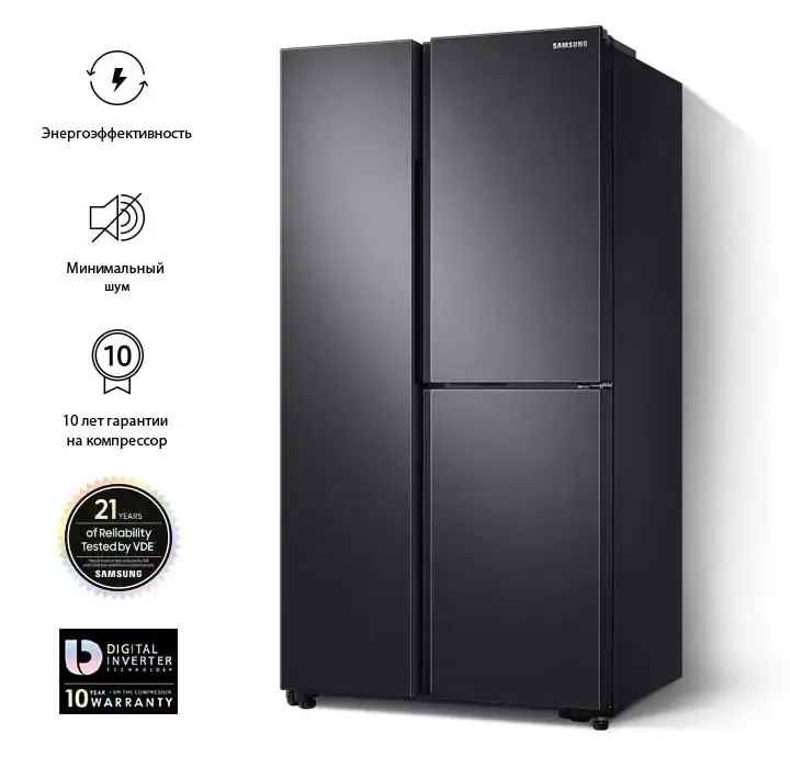 Инверторный компрессор Samsung значительно экономит энергопотребление. А его надежность подтверждается сертификацией на 21 год непрерывной эксплуатации*. Инверторный компрессор автоматически регулирует скорость работы в зависимости от требуемой степени охлаждения. Это сокращает износ и шум. На инверторный компрессор предоставляется гарантия на 10 лет.