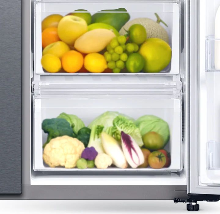 Ящик для овощей имеет большой объем. Это удобное место для хранения больших количеств свежих овощей и фруктов. А поскольку этот ящик очень большой, в нем всегда легко найти нужный продукт, и вам не нужно загромождать кухню продуктами.