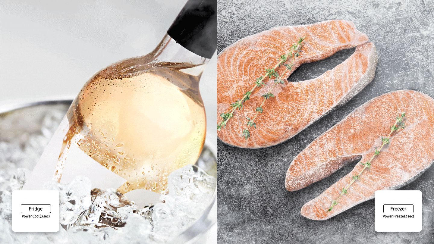 Режим быстрого охлаждения запускается одной кнопкой. Через рабочую камеру продувается интенсивный поток холодного воздуха, который быстро охлаждает напитки. В режиме быстрой заморозки холодный воздух поступает в морозильную камеру. Режим мощной заморозки поможет быстро охладить мороженное или приготовить лёд.