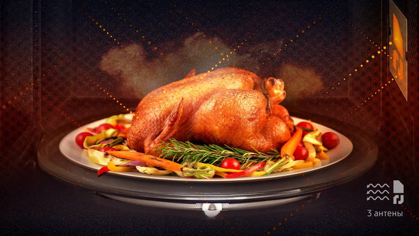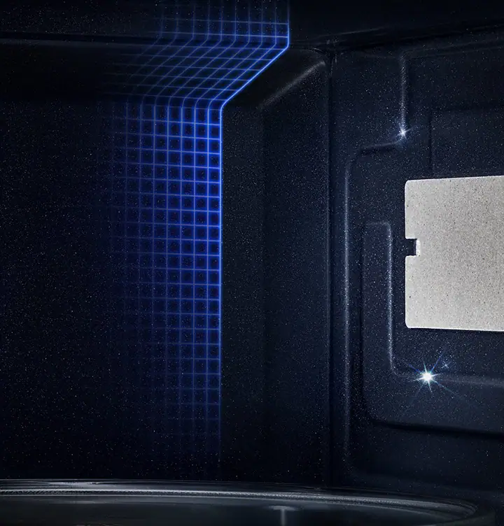 Убедитесь в том, что все блюда приготовлены хорошо. Уникальная система тройного распределения микроволн равномерно прогревает рабочую камеру, проникая в блюдо со всех сторон. Благодаря этому блюда приготовлены равномерно.
