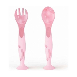 Детская ложечка и вилочка на присосе (Розовый) БытПласт 431312005