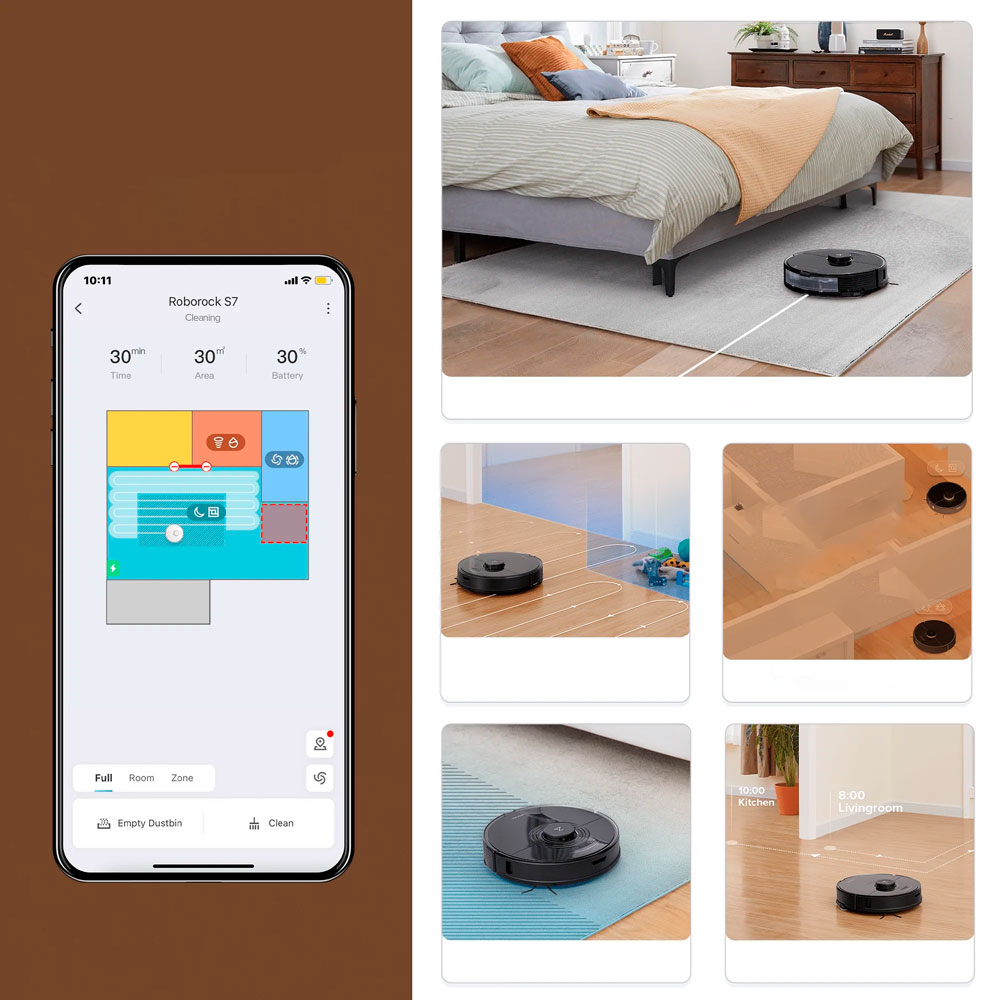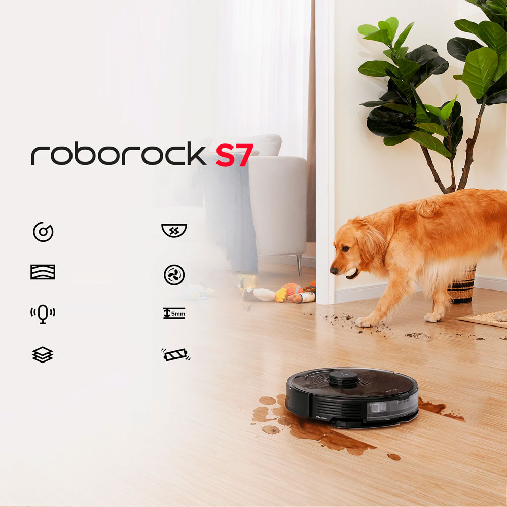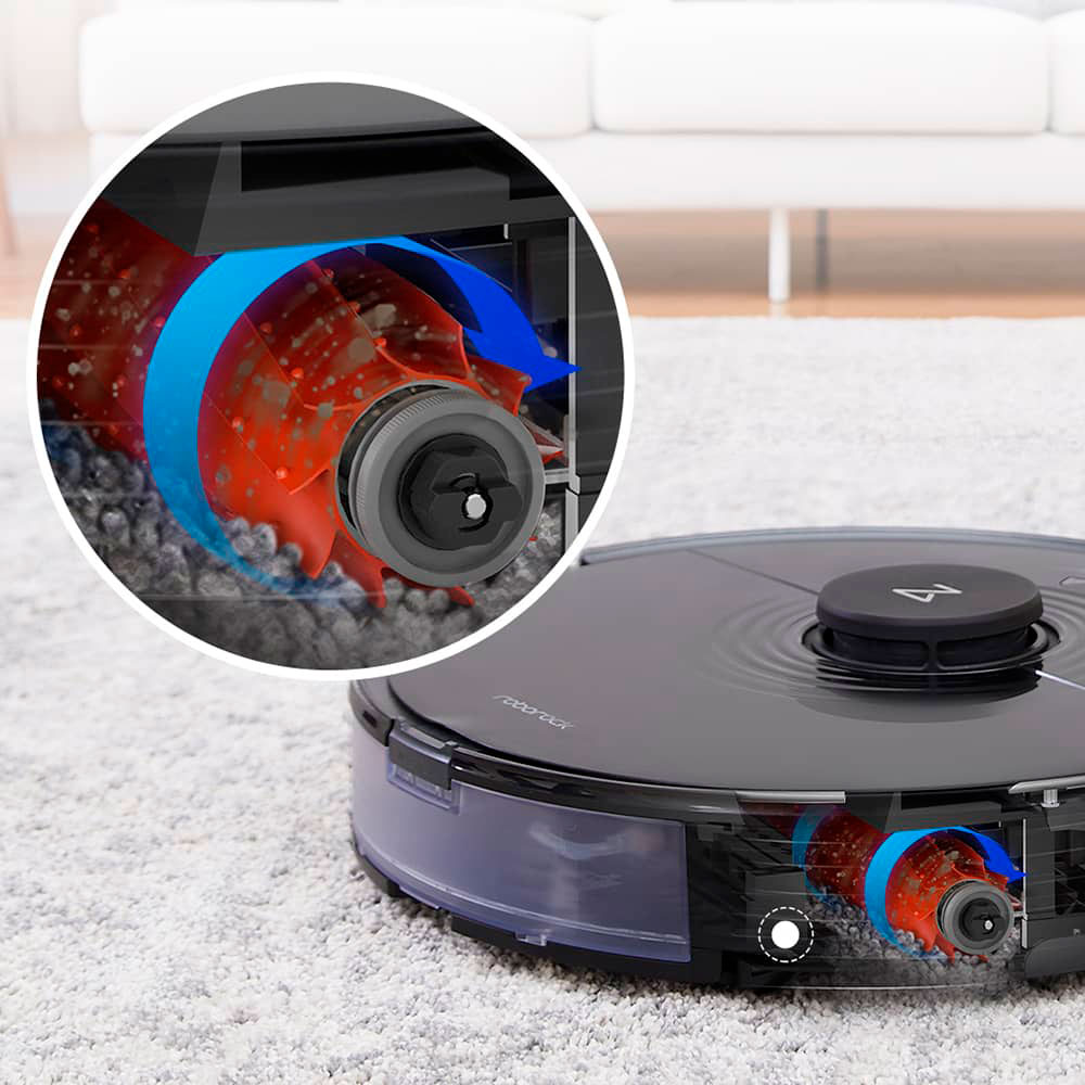 Благодаря давлению швабры 600г и всасыванию 2500Па Roborock S7