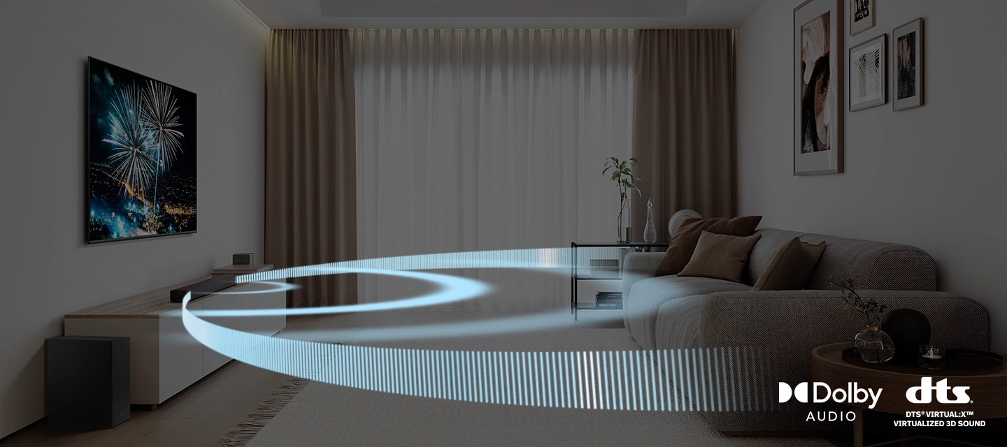 Технологии Dolby Audio и DTS Virtual:X обеспечивают объемное трехмерное звучание и передают даже ощущение высоты благодаря передовой обработке звука.