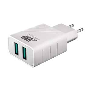 Сетевое зарядное устройство 2 USB, 2,4A белое, BoraSCO (VSP)