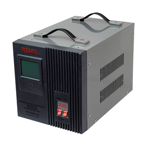 Стабилизатор напряжения Ресанта АСН 5000/1-Ц релейного типа предназначен для выравнивания входного напряжения и защиты приборов от перепадов напряжения с суммарной мощностью до 5 кВт. Работает с напряжением 220В с точностью до +/-8%. Устройство оснащено фильтрами сетевых помех, предотвращающими искажение частотной синусоиды, микропроцессорным управлением и цифровым индикатором напряжения, на котором отображаются параметры напряжения. Превышение пределов поддерживаемого входного напряжения автоматически отключает подачу питания. Прочный корпус защищает внутренние узлы аппарата от повреждений. Данный стабилизатор может обеспечивать стабильным питанием - телевизор, ресивер, DVD проигрыватель, кассовый аппарат, газовый котел.