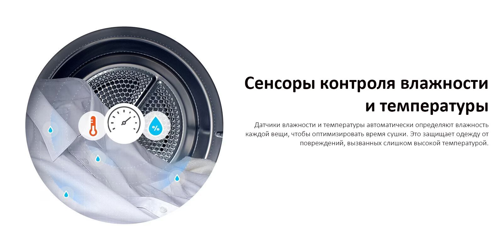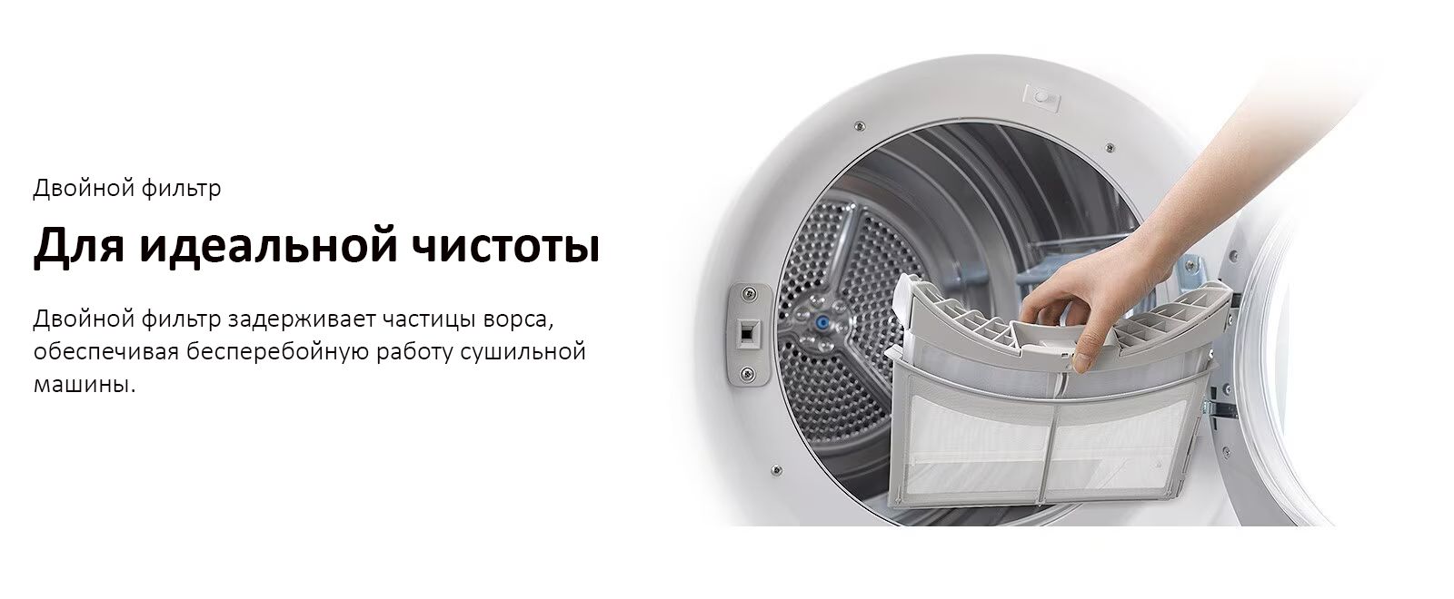 Система самоочистки конденсатора обеспечивает высокую эффективность сушки, избавляет от регулярной чистки и не требует вашего участия.