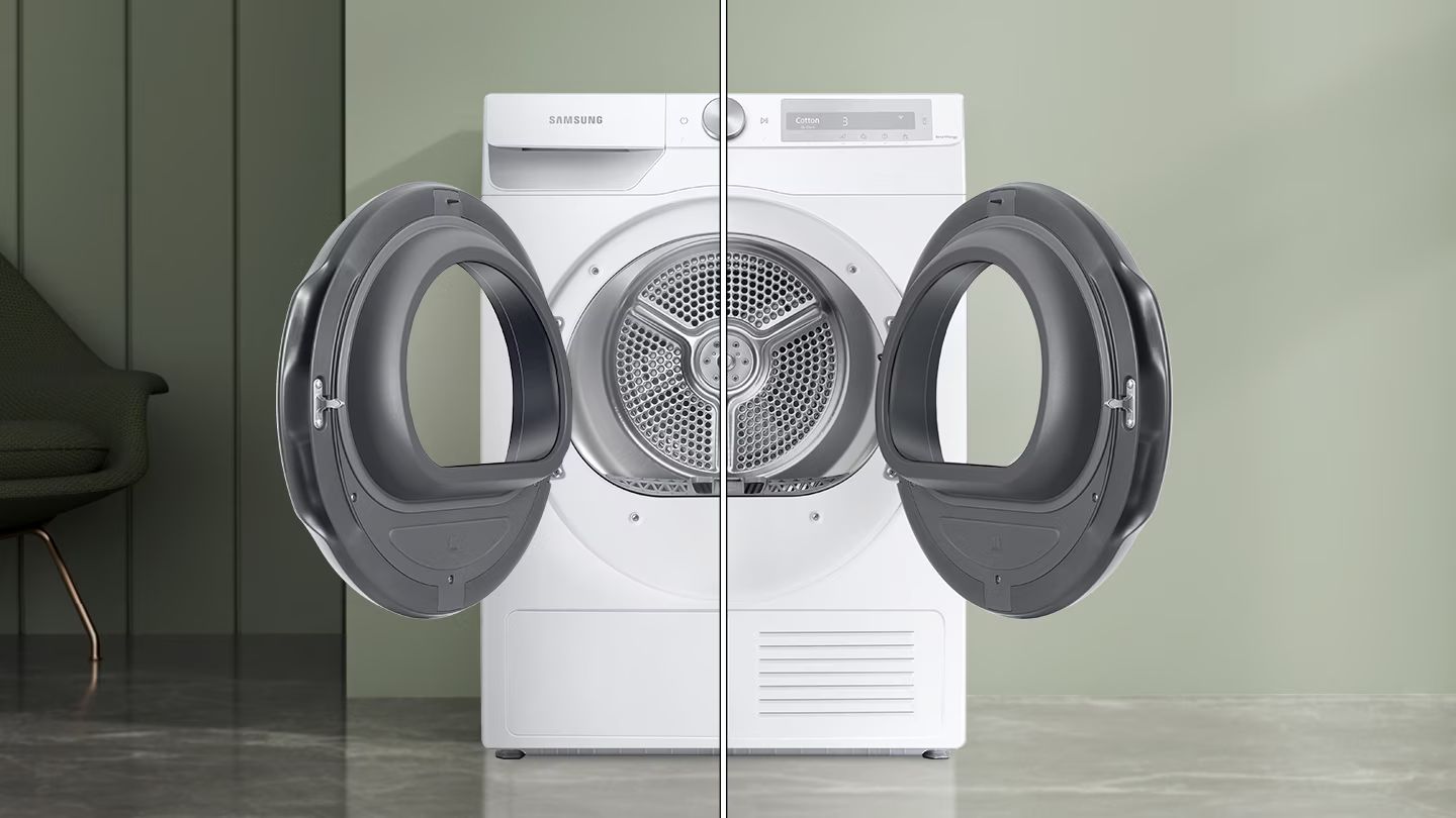 Выбирайте направление, в котором вы хотите открыть дверь, в зависимости от расположения вашей сушильной машины, так что вам не будет мешать стена или дверь. Кроме того, дверца прозрачная и позволяет увидеть процесс сушки.