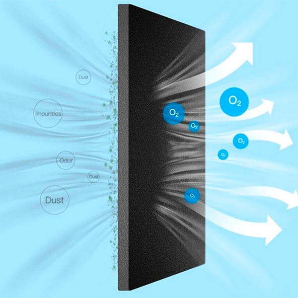 Резервуар для воды оснащен фильтрующей сеткой, которая эффективно задерживает примеси и другие загрязнения. В основании воздуховода установлен фильтр с активированным углем, позволяющий улавливать крупные частички пыли и волос.