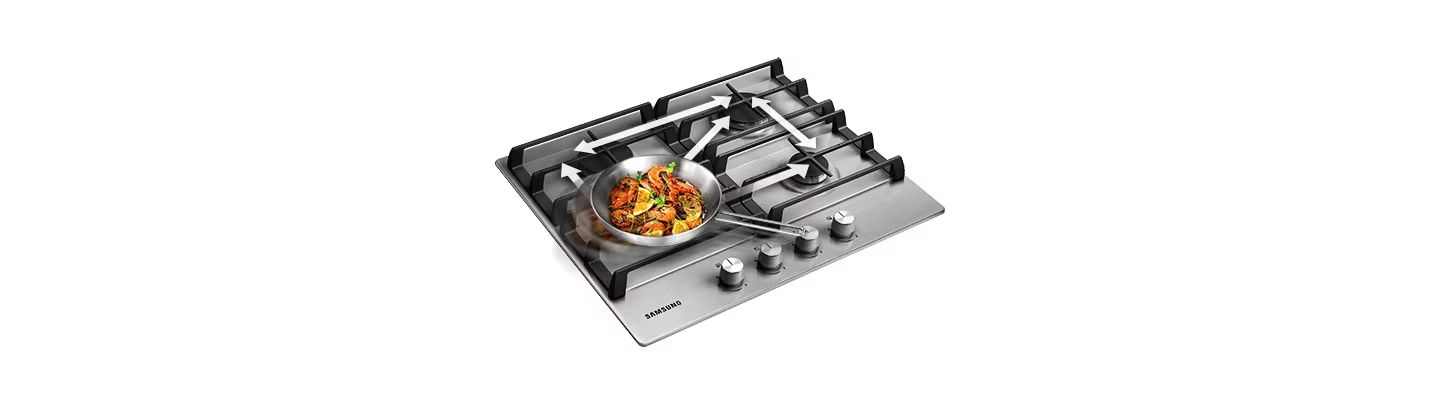Газовая варочная поверхность Samsung оснащена 4 конфорками общей мощностью 9,6 кВт – самой высокой в своем классе. Это обеспечивает исключительно быстрый разогрев посуды и позволяет использовать сильный огонь для пассировки и обжаривания продуктов. Также Вы сможете быстрее вскипятить воду и приготовить еду. Наконец, если Вы спешите, то мощные конфорки сэкономят Ваше время.