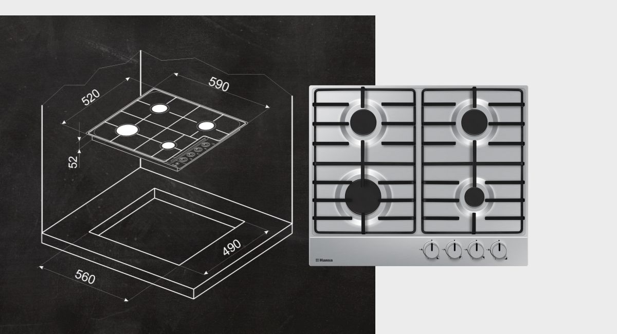 Габариты товара варочная поверхность 590×520×52 мм .Габариты ниши 560×490 мм