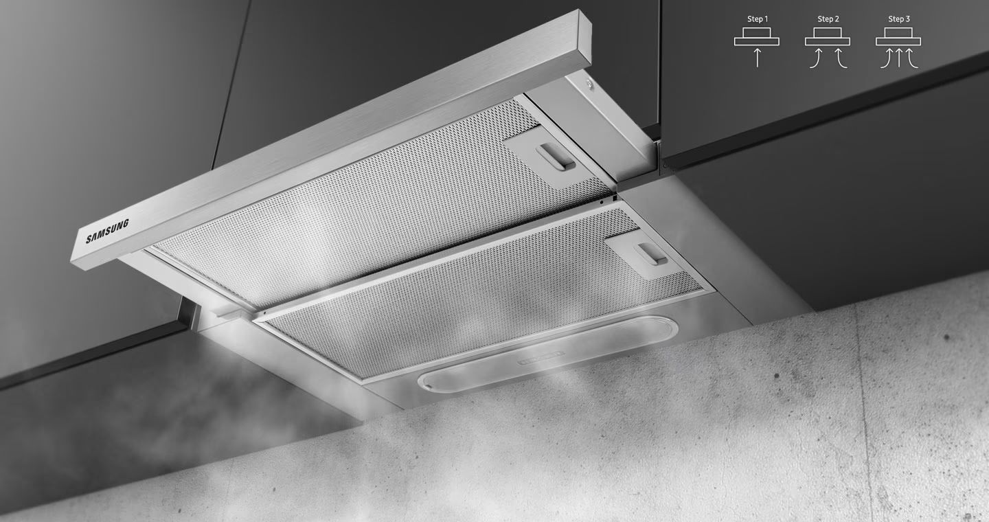 3-скоростной вентилятор с достаточной мощностью двигателя обеспечивает необходимый вытяжной эффект, эффективно удаляя пары и запахи.
