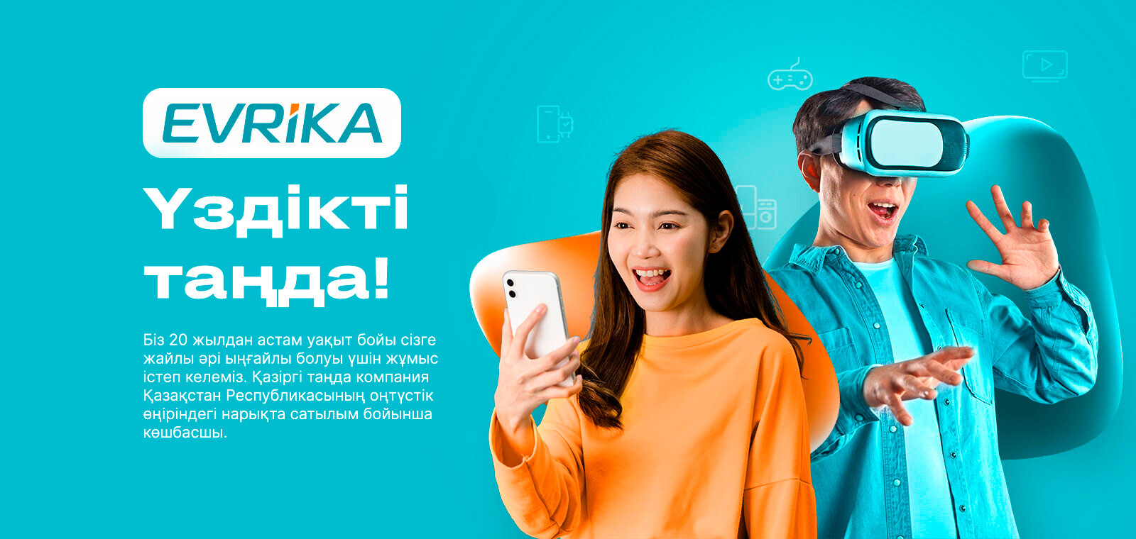 Evrika дүкендер желісі әлемнің жетекші брендтерінің 10000-нан астам тауар атауларын қамтитын, электроника мен тұрмыстық техниканың кең ассортиментін ұсынады.