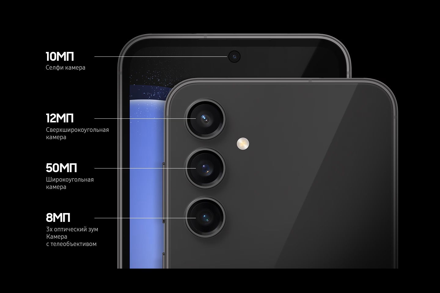 *Изображение приведено в качестве примера. **Стекло задней панели не закрывает камеру. Рамка не закрывает кнопки громкости и боковую кнопку, а также лоток для SIM-карт. *** Galaxy S23 FE соответствует стандарту IP68. Соответствие подтверждено лабораторными испытаниями с погружением в пресную воду на глубину до 1,5 м на время до 30 минут. Не рекомендуется использовать на пляже и в бассейне. Защита смартфона от воды и пыли не является бессрочной и может снижаться со временем из-за нормального износа.