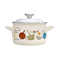 Кастрюля прелесть. Цвет: светлый беж. Рисунок милый (с одуванчиками). Качество великолепное. Очень советую к приобретению. Спасибо продавцу. Курьер был вежливый. Довольна.