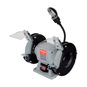 Точильный станок х 1/ Круг шлифовальный х 2/ Искрогаситель х 2/ Экран защитный х 2 / Крепеж -х1 комплект/ Рабочий упор х 2/ Руководство по эксплуатации.
